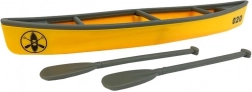 Součástí sady je žluto‑šedý kajak a dvě pádla. Snadno jej připevníte na střechu auta a vyrazíte na vodní mise v dětské fantazii.