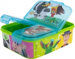 Víko zdobí atraktivní motivy LA GRANJA DE ZENÓN, které si děti zamilují. Krabičku lze využít také pro ukládání drobných hraček a pokladů. Materiál bez BPA je bezpečný pro kontakt s potravinami a snadno se čistí.
