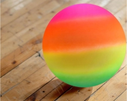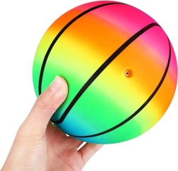 Dětský gumový míč s průměrem přibližně 23 cm je ideální pro každodenní hry na hřišti, na zahradě, ve škole i na dovolené. Díky lehké konstrukci se snadno hází a chytá, duhové barvy zaručí skvělou viditelnost a radost z pohybu. Materiál je voděodolný, takže si s míčem užijete zábavu i u vody nebo v bazénu.
