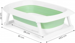 Díky skládacím nohám a mělkému profilu vaničku během chvilky složíte a uložíte do skříňky či pověsíte na háček. Protiskluzové nohy i protiskluzová vložka dna pomáhají držet vaničku i miminko ve stabilní a bezpečné poloze.