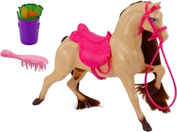 Kůň s realistickými detaily a pohyblivými prvky. Obsahuje růžové sedlo a uzdu s vodítky pro autentickou hru.