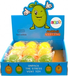 Antistresový mačkací míček ve tvaru plodu chlebovníku (jackfruitu) z měkké gumy přináší okamžité uvolnění a zábavu doma, ve škole i v kanceláři. Díky měkkému a roztažitelnému materiálu se příjemně mačká, realistický vzhled nadchne děti i dospělé a kompaktní rozměry 9 × 6 cm usnadní přenášení. Bezpečnost zajišťují certifikace CE a norma EN71. Prodává se po 1 ks, barva je vybírána náhodně.