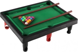 Mini dětský stolní kulečník je věrnou zmenšeninou klasického stolu, kterou snadno položíte na stůl či jinou rovnou plochu. Pevná konstrukce a hrací plocha se zeleným potahem zaručují plynulý skluz koulí a autentický zážitek z hry i v malém prostoru.