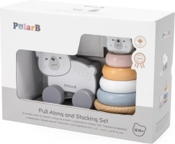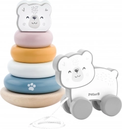 Objevte dokonale sladěný set dřevěných hraček Viga PolarB: stabilní pyramidu s ledním medvědem pro třídění a skládání kroužků a tahacího medvídka, který motivuje děti k pohybu a prvním krůčkům. Jemné pastelové barvy a milý design potěší děti i rodiče.