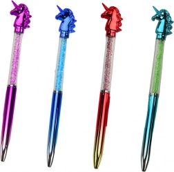 Kuličkové pero s jednorožcem, třpytivé kamínky, modrá náplň 0,7 mm