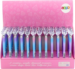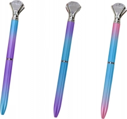 Elegantní kuličkové pero s velkým třpytivým „diamantem“ na konci dodá vašim poznámkám šmrnc. Má modrý inkoust pro hladké psaní, hrot 0,7 mm a barevné provedení v odstínech modré, růžové a fialové. Skvělá volba pro každodenní použití i jako stylový doplněk.