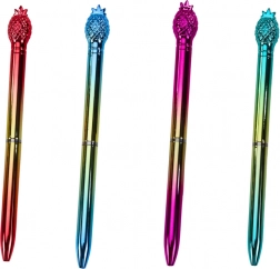 Dodajte svým poznámkám šmrnc – zlaté pero s ananasem je skvělý doplněk do penálu i na pracovní stůl. Díky hladkému písmu a modré náplni se hodí do školy, do kanceláře i na podpisy při výjimečných příležitostech.