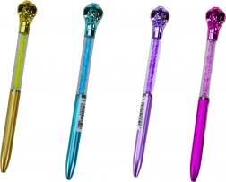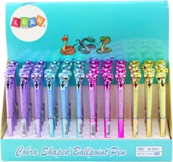 Toto stylové kuličkové pero zaujme originální figurkou kobry na horní části a průhledným tělem, ve kterém se při každém pohybu třpytí drobné „diamanty“. Díky modré náplni o šířce stopy 0,7 mm píše plynule a čitelně, takže je ideální do školy, do kanceláře i na doma.