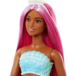 Tato barevná panenka Barbie mořská víla inspiruje děti k vytváření kouzelných podmořských dobrodružství. Má jemně tvarovaný, šupinkový ocas s výraznými ploutvemi, mušlový top a dlouhé růžové vlasy doplněné o oceánské ozdoby. Díky pohyblivým částem se snadno pózuje a napodobuje „plavání“ ve hrách.