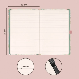 Praktické poutko na tužku a vnitřní kapsa na drobnosti oceníte na cestách i v kanceláři. Linkované listy na jemně žlutém papíře poskytují příjemný kontrast a pohodlné čtení i při delším psaní.