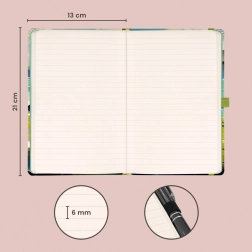 Rozměr 13 × 21 cm skvěle padne do tašky či batohu – ať už plánujete, tvoříte deník, nebo zapisujete pracovní úkoly. Vnitřní kapsa pojme drobnosti, vizitky či volné papírky, abyste měli vše přehledně na jednom místě.
