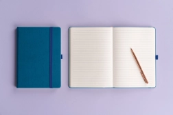 Elegantní linkovaný notes Notique Aprint v modré barvě v univerzálním formátu 15 × 21 cm. Nabízí klasický a nadčasový design, jemnou strukturu povrchu a možnost snadného ražení firemního loga – ideální pro kancelář, školu i reprezentativní dárky.