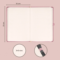 Stylový tečkovaný notes Notique Aprint Neo v růžové barvě je ideální pro poznámky, skicování i bullet journal. Nabízí elegantní povrch s jemnou strukturou, na který lze snadno razit firemní logo, a praktický formát 15 × 21 cm pro každodenní použití.