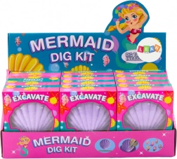 Tato zábavná a edukativní vykopávací sada přenese děti do světa mořských pokladů. Uvnitř stylové mušličky je ukrytá figurka mořské víly, kterou děti opatrně objeví pomocí přiložených nástrojů. Postupné odkrývání podporuje trpělivost, sou-středění a jemnou motoriku.
