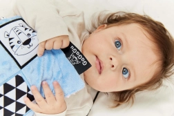 Dečka využívá výrazné kontrastní barvy a vzory k stimulaci zraku dítěte a k rozvoji vizuálního zájmu.