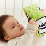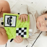 Texturované látky, vystouplé tečky a měkké prvky povzbuzují hmat a motivují dítě k uchopení, mačkání a zkoumání.
