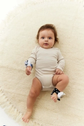 Díky speciálnímu suchému zipu lze chrastítko snadno připevnit na zápěstí, což umožňuje pohodlné uchopení celé hračky. Popruh je vyroben z měkkého materiálu, což zajišťuje komfortní použití. Hračka je velmi lehká a skladná, což ji činí skvělým společníkem na procházky či výlety.