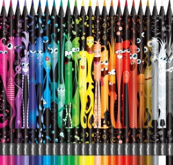 Souprava 24 ergonomických pastelek s motivy příšerek. Odolná tuha a snadné ořezávání pro plynulé a jasné kreslení.