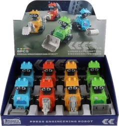 Roboti jsou vyrobeni z odolného plastu a přicházejí ve čtyřech atraktivních variantách inspirovaných stavební technikou. Kompaktní rozměry 8 × 10 × 14 cm padnou do dětské ruky a podněcují představivost i rozvoj jemné motoriky.