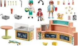 - Figurky a doplňky: Sada přichází s třemi figurkami PLAYMOBIL, pultem prodeje, grilem s fritézou, umyvadlem, stolkem na bistro a řadou dalších doplňků pro kreativní hraní rolí.