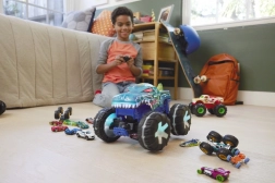 Ponořte se do světa napínavé hry s Hot Wheels Monster Trucks Mega-Wrex ve měřítku 1:15. Tento unikátní model je vybaven světly a zvuky, které se aktivují při každé interakci, poskytujíc tak děti neustále inspirující zážitek plný energie.