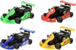 Malá plastová motokára o délce 9 cm v živých barvách, perfektní jako dárek pro malé závodníky. Detailní design a živé barvy ji činí ideální pro zábavu a dekoraci.