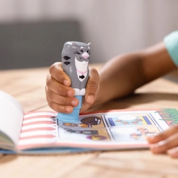 Užijte si nekonečné možnosti s naší sadou: razítko ve tvaru šedé kočky s bílým čumáčkem a růžovým nosíkem, vkládaný modul s 300 nálepkami s tématem zvířat, a 24stranná barevná kniha určená k tvorbě vlastní zvířecí pohádky.