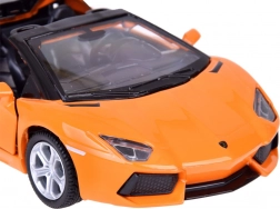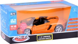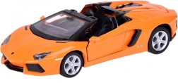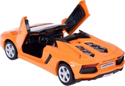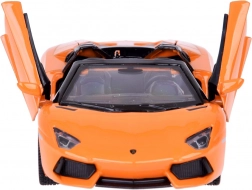Model nabízí detailní a věrnou repliku skutečného modelu Lamborghini Aventador Roadster s precizními detaily exteriéru i interiéru.