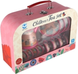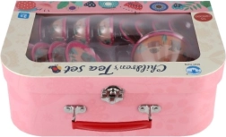 Čajová sada je uložena v pevném kufříku s uchem a kovovým zavíráním. Děti si ji vezmou kamkoli a po hře ji snadno uklidí.