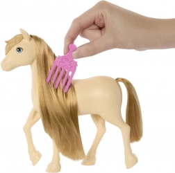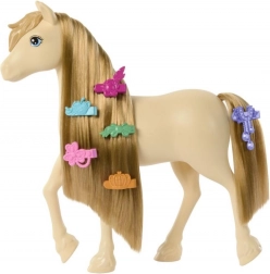Koník má detailně zpracované tělo a stojí ve stylizované chůzi, což z něj dělá krásný kousek do dětské sbírky. Hra s vlasy rozvíjí jemnou motoriku, kreativitu a představivost. Lze kombinovat s panenkami a dalšími doplňky ze světa Barbie (prodávají se samostatně).
