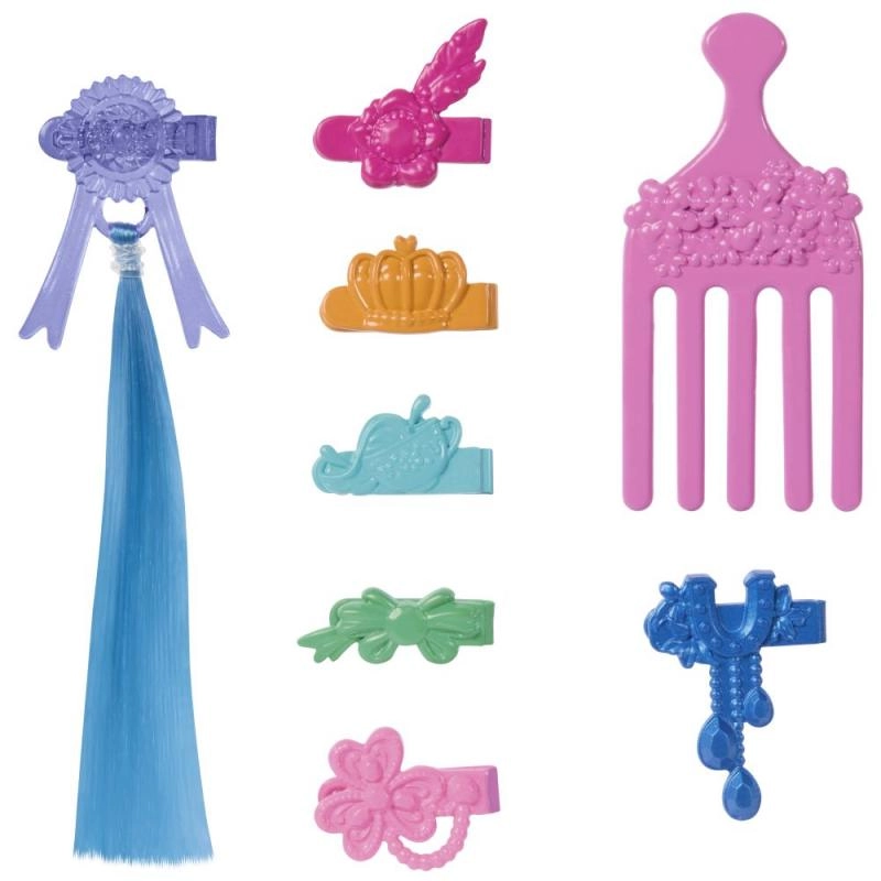 Objevte kouzlo stylování s koníkem Tornado ze světa Barbie. Dlouhá, hebká hříva i ocas vybízejí k česání, zaplétání a zdobení. Díky bohaté sadě doplňků děti vytvoří jedinečné účesy – od roztomilých vln po hravé kombinace spon a ozdob.
