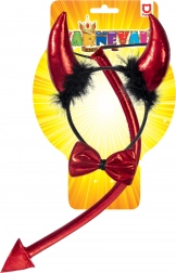 - Čelenka s rohy, ocas, hůlka ve tvaru vidlí