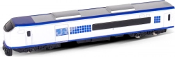 Bílé provedení s modrými detaily a čistými liniemi zvýrazňuje moderní vzhled lokomotivy – ideální pro hru i výstavku.