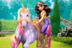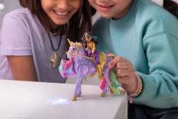 Vstupte do fantazie s půvabnou sadou Sophia & Wildstar. Díky autentickým detailům postav, jemné duhové hřívě a skutečným světelným efektům si děti znovu prožijí oblíbené scény ze seriálu i knih. Sophia má 7 bodů ohybu, takže ji snadno usadíte do odnímatelného sedla a připnete uzdečku pro jistou jízdu.