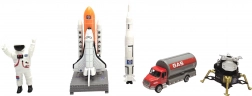 - Figurka kosmonauta, raketa, raketoplán na startovací rampě, lunární modul, cisternový kamion
