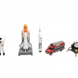 • Kompletní vesmírná mise: astronaut, raketa, raketoplán na rampě, lunární modul, cisternový vůz