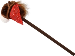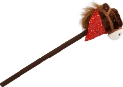S hnědou plyšovou hlavou a výrazným rudým šátkem, dodává hře nádech kovbojské atmosféry, zatímco pevná dřevěná tyč zajišťuje stabilitu a bezpečnost. Ideální pro vnitřní i venkovní použití.