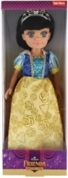 Představujeme vám pohádkovou panenku, která okouzlí svou krásou a detailním provedením. Panenka je vysoká 38 cm a je oblečena do nádherných modro-žlutých šatů zdobených květinovými vzory. Na hlavě nosí stříbrnou tiaru, která podtrhuje její královský vzhled. Tato panenka je perfektní pro imaginativní hry a nabízí spoustu možností pro rolové hraní. Hračka je vybavena pohyblivými končetinami, což umožňuje různé pózy a díky svým rozměrům se snadno vejde do dívčích rukou.