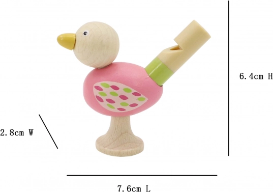 Originální píšťalka ve tvaru ptáčka, která nabízí čtyři různé barevné varianty - růžová, modrá, žlutá a oranžová.