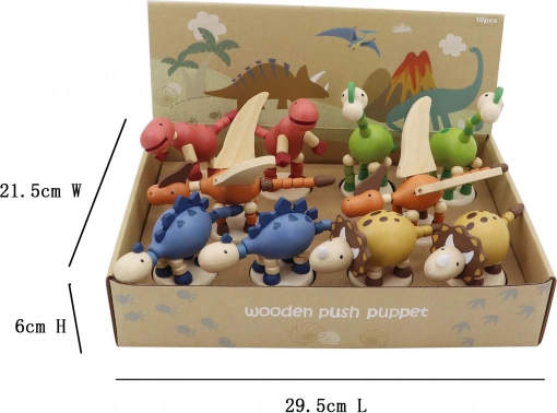 Dřevěný mačkací dinosaurus je zábavná hračka pro děti, která podporuje jemnou motoriku a kreativitu. Díky různým barevným variantám se hodí do každého dětského koutku.
