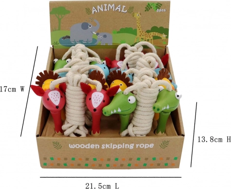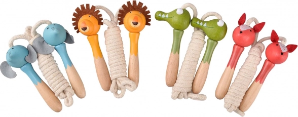 Dřevěné švihadlo se zvířátky o délce 210 cm s pohodlnými dřevěnými rukojeťmi v motivech slon, lev, krokodýl, liška. Skvělá zábava a trénink koordinace pro hru venku i doma.