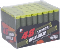 Balení 48 ks náhradních pěnových nábojů o rozměru 7 × 1,3 cm pro rychlé doplnění munice. Lehká pěna šetrná k okolí a pohodlné používání. Určeno pro vybrané modely stejného výrobce.