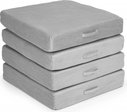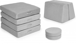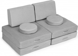 Díky lehkým prvkům s úchyty si děti mohou nábytek snadno samy přenášet a skládat. Snímatelné potahy se zipem usnadní údržbu – stačí je sundat a vyprat. Neutrální šedé provedení skvěle zapadne do moderního interiéru a vydrží každodenní používání.