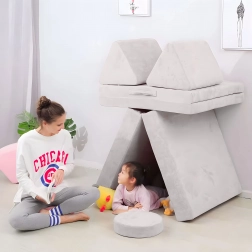 Osm různých prvků umožňuje dětem každý den tvořit nové sestavy – od gauče přes hrací bunkr až po pohodlnou podložku na čtení. Rozvíjí kreativitu i dovednosti DIY.