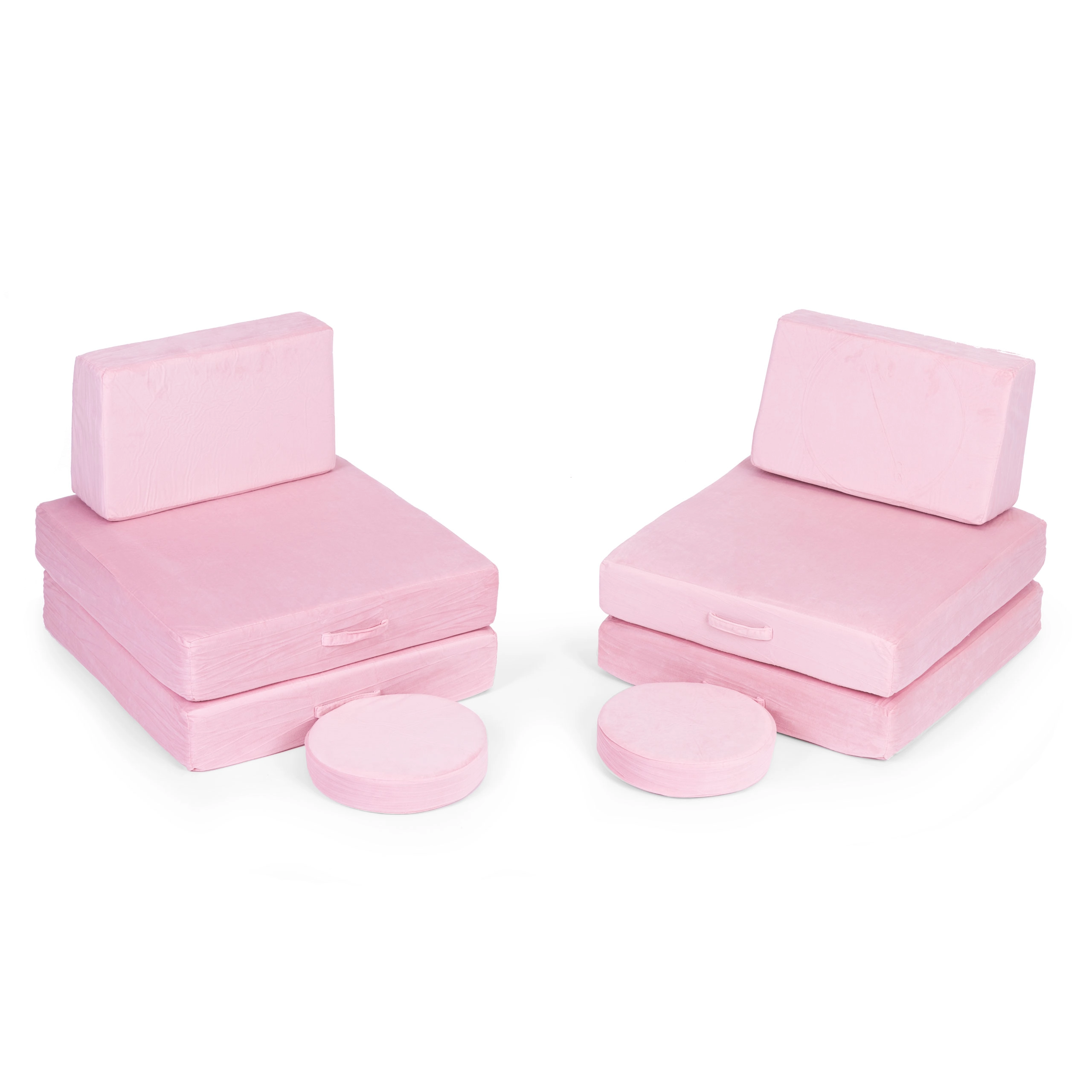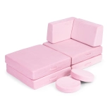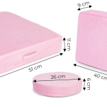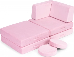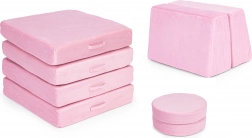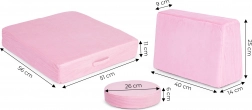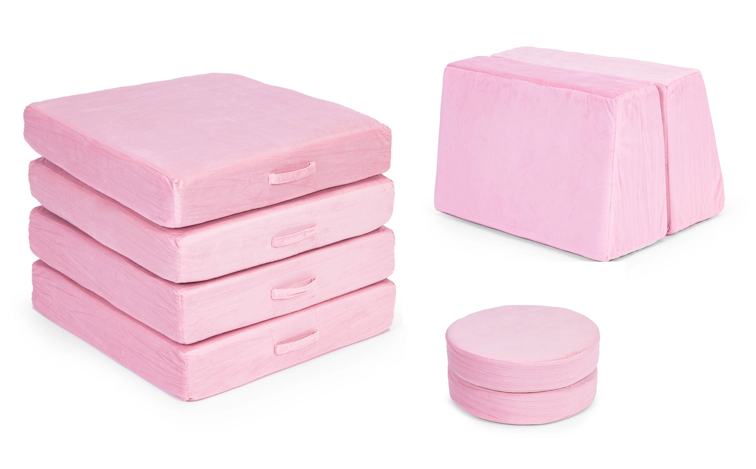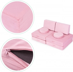 Potahy se zipem snadno sundáte a vyperete, což usnadňuje udržování čistoty i při každodenním používání. Díky univerzálnímu designu v růžové barvě se pohovka hodí do moderních i hravých interiérů a podpoří kreativní DIY stavění – od domečků po „vozidla“.