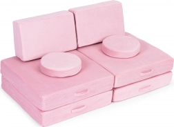 Tato velká modulární dětská pohovka přináší komfort, variabilitu a zábavu v jednom. Sada obsahuje 8 prvků různých tvarů, z nichž postavíte pohodlné sezení, lehátko, bunkr nebo překážkovou dráhu. Lehká a měkká pěnová výplň se přizpůsobí tělu, takže je ideální pro čtení, odpočinek i tvořivou hru.