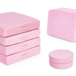Osm polštářů různých tvarů umožňuje dětem skládat domečky, hrady i překážkové dráhy. Rozvíjí kreativitu, motoriku a samostatnost při hře.