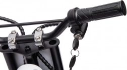 - Bezpečné ovládání – široká řídítka, kotoučové brzdy a pevné stupačky.