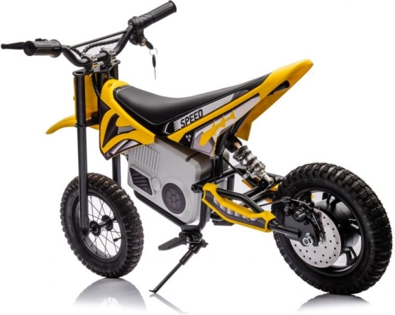 Objevte zábavu v terénu s dětskou krosovou motorkou na baterii 36 V v atraktivní žluté barvě. Nabízí silný elektrický pohon, terénní pneumatiky, přední a zadní odpružení a kotoučové brzdy pro bezpečnou jízdu. Ideální pro první zkušenosti v terénu a rozvoj rovnováhy i jistoty malých jezdců.