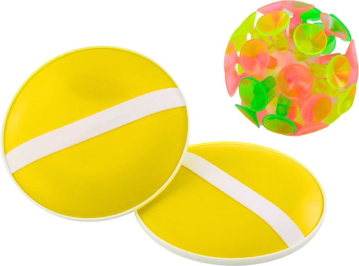 Objevte novou úroveň zábavy s tímto herním setem, který je navržen tak, aby poskytl radost a aktivní relaxaci během horkého počasí. Sada obsahuje jeden míček s přísavkami a dvě žluté kulaté pálky, které mají speciální povrch pro snadné chytání.